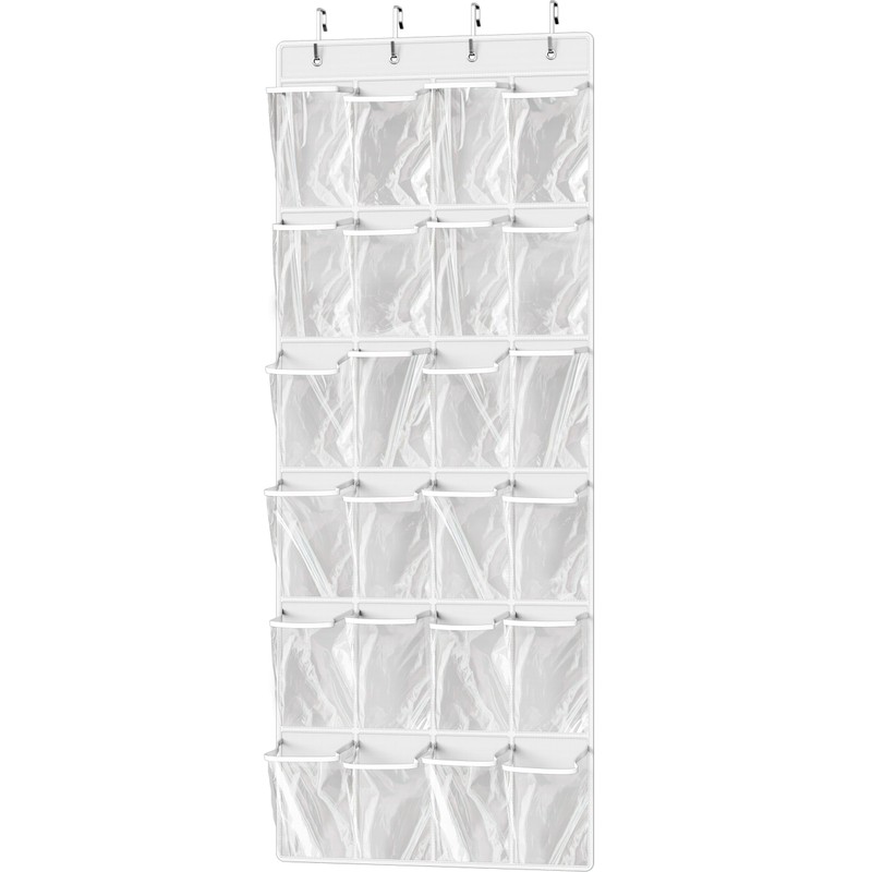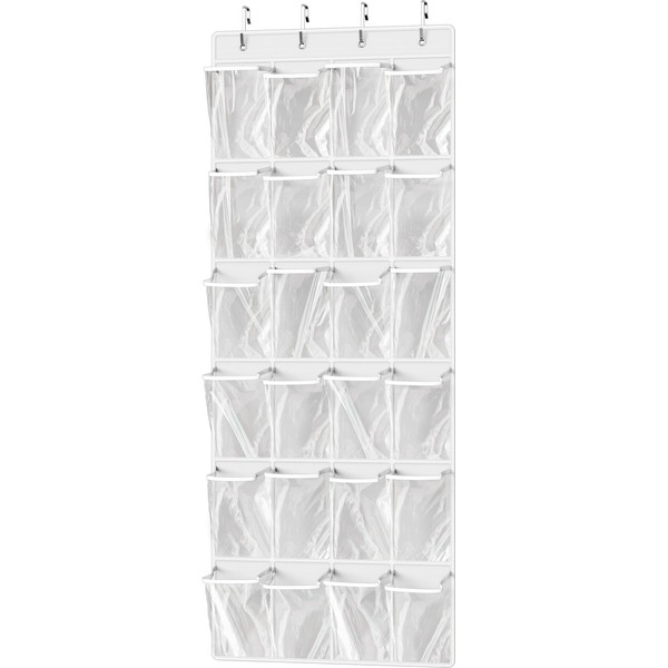 Simple Houseware 24 Pockets Large Clear Pockets Over The Door Hanging Shoe Organizer, White (56" x 22.5")