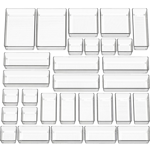 Simple Houseware 30 Pack Clear Plastic Drawer Organizers(9S, 10M, 7L, 2 XL, 2XXL)
