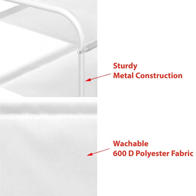 - Sturdy metal construction with washable 600 D polyester fabric, each shelf holding up to 30 lbs
