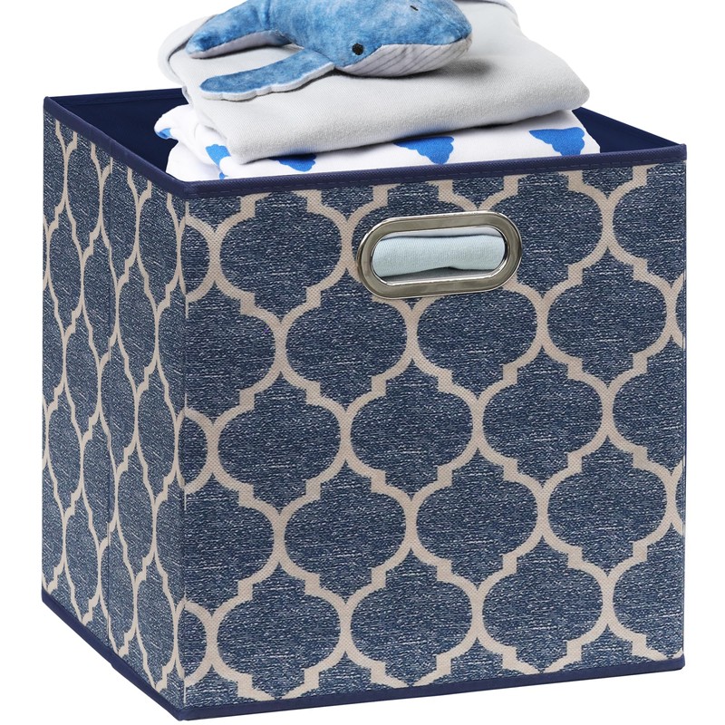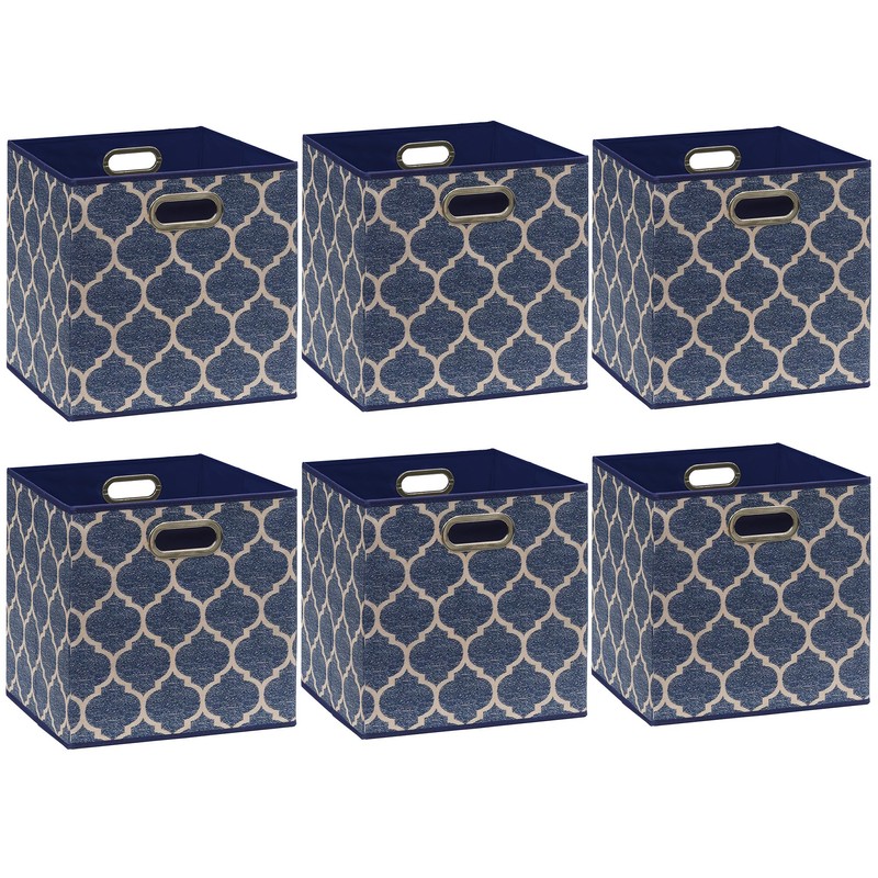 Simple Houseware 6 Pack Printing Fabric Cube Storage Bin with Handle, Steel Blue
