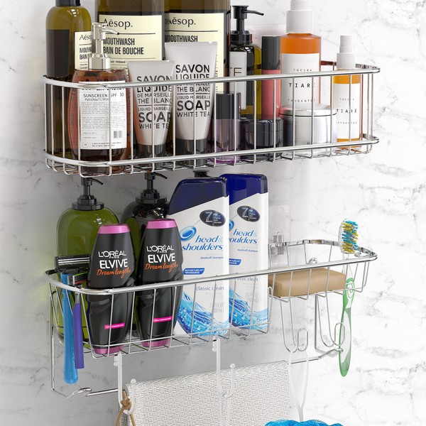 Simple Houseware Bathroom Adhesive Wall Mount Large 2-Tier Shower Caddy, Chrome