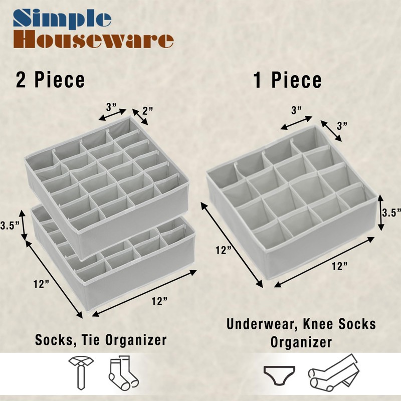 - 2 Pack 24 cells and 1 pack 16 cells drawer organizer. Good for organizing your socks, underwear, ties, handkerchiefs, swim suits, belt and etc...