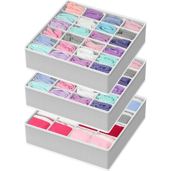 Simple Houseware Sock Drawer Organizer for Dresser/Closet/Bedroom, 3 Pack, Gray