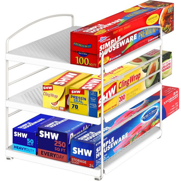 Simple Houseware Kitchen Wrap Organizer Storage Height Adjustable Rack, White