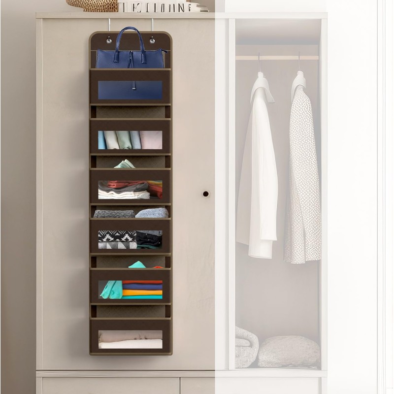 SIMPLE HOUSEWARE SimpleHouseware Baby Over The Door Hanging Organizer Storage, 6 Clear Window Pocket, Brown