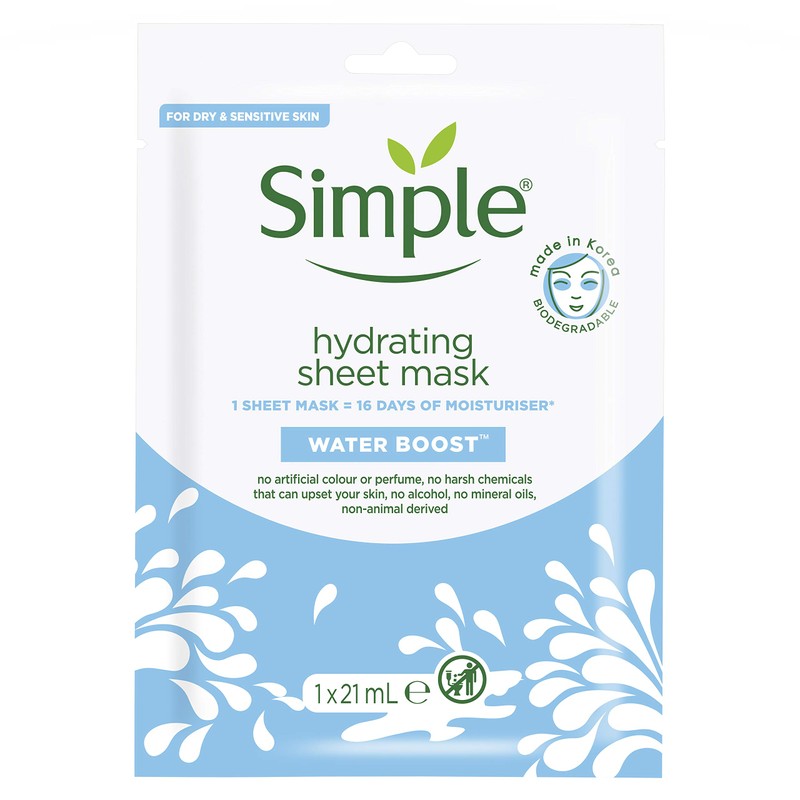 - Simple Water Boost Hydrating Sheet Mask helps to tackle the 5 early signs of dehydrated skin: dryness, dullness, dry dehydration lines, tightness, and roughness