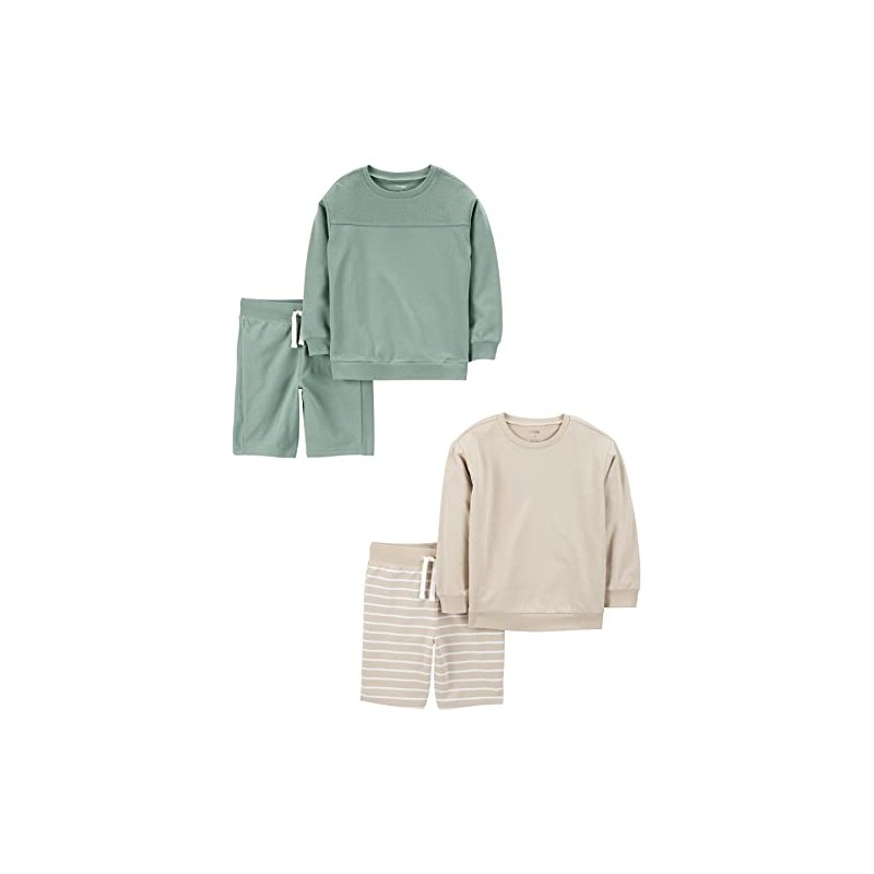 Simple Joys by Carter's Baby Boys Playwear Sets (Pack of 4), Beige stripes/bottle green