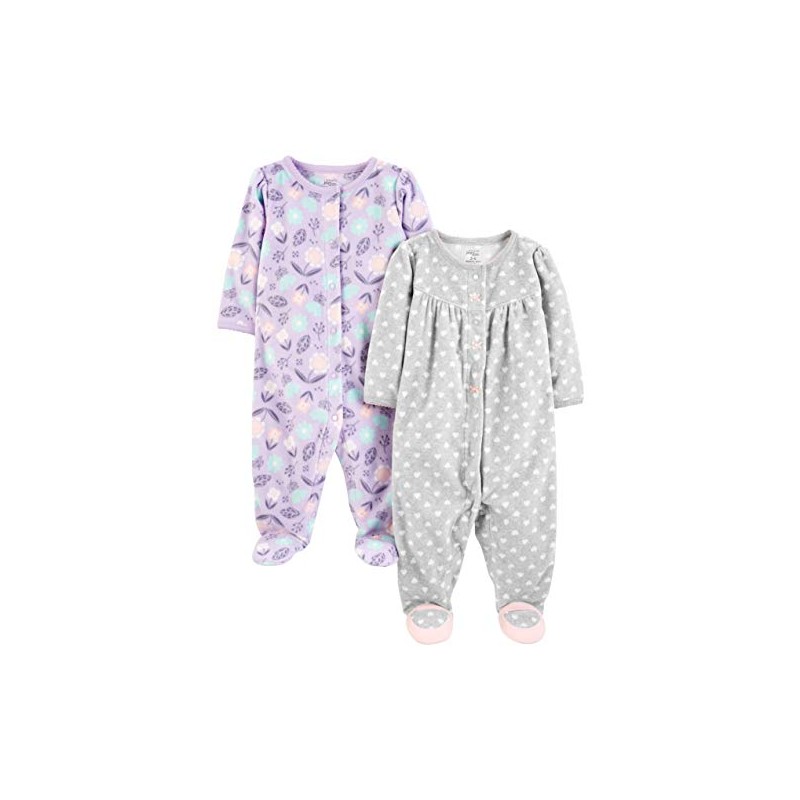 Simple Joys by Carter's Baby Girls' Fleece Footed Sleep and Play, Pack of 2, Grey Hearts/Lavender Floral, Newborn