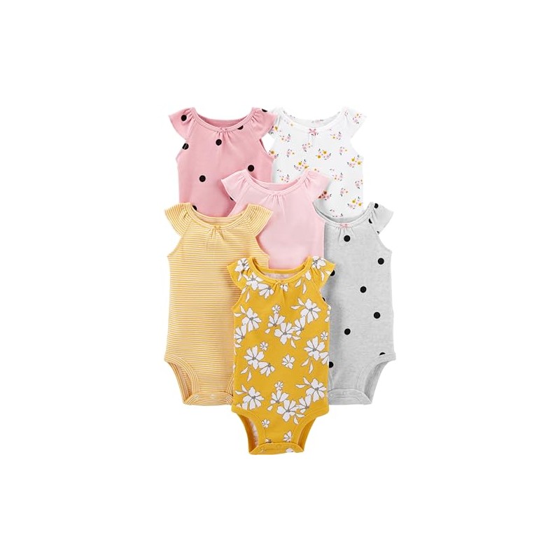 Simple Joys by Carter's Baby Girls' Sleeveless Bodysuit, Pack of 6, Multicolor/Dots/Floral/Stripe, 24 Months