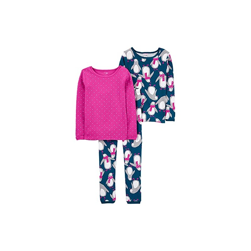 Simple Joys by Carter's Girls Kid Baby, Toddler, and Little 3-Piece Snug-Fit Cotton Pajama Set, Penguin/Dots, 4