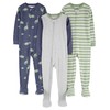Simple Joys by Carter's Toddlers and Baby Boys' Snug-Fit Footed Cotton Pajamas, Pack of 3, Green Stripe/Grey Heather/Indigo Wash Dinosaur, 12 Months