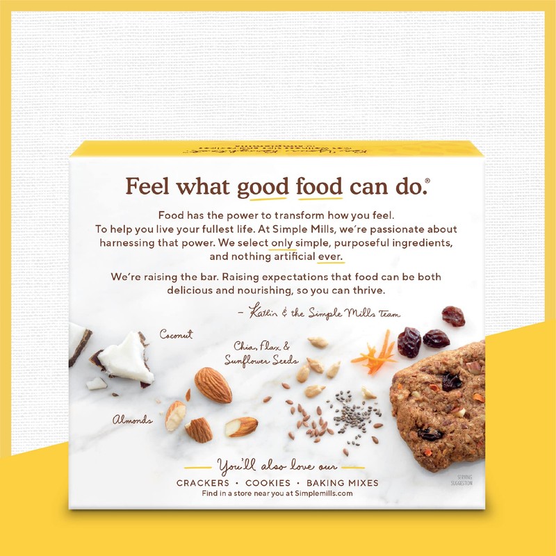 Simple Mills enriches lives and bodies through simple, delicious, real foods. We strive to make healthful choices easy by offering food that tastes great in the moment and nourishes your body for the long-term.We believe if you don’t recognize an ingredient, your body won’t either, so we handpick ours with purpose - only including things that nourish you. Nothing artificial, ever. We’re here to positively impact the way food is made, because we believe good health enables greater, passion-filled lives. Clean, nutritious foods, for a greater life. It’s that simple. Food has the ability to transform how you feel. We're raising the bar. Raising expectations that food can be both delicious and nourishing, so you can thrive. All Simple Mills products are made in North America (USA & Canada). Sign up for our newsletter on our Simple Mills website so you can keep up to date with our latest news, health tips, & recipes or click on the blue Visit the Simple Mills Store link by the Product Title.