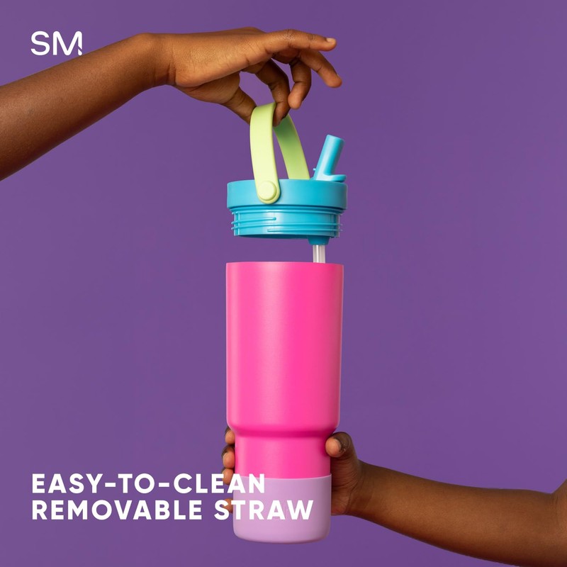 Simple Modern Trek Pivot | 24oz Kids Flip Straw Tumbler with Handle and Silicone Boot | Insulated Water Bottle Stainless Steel Cup | School Travel Jug | 80s Mix