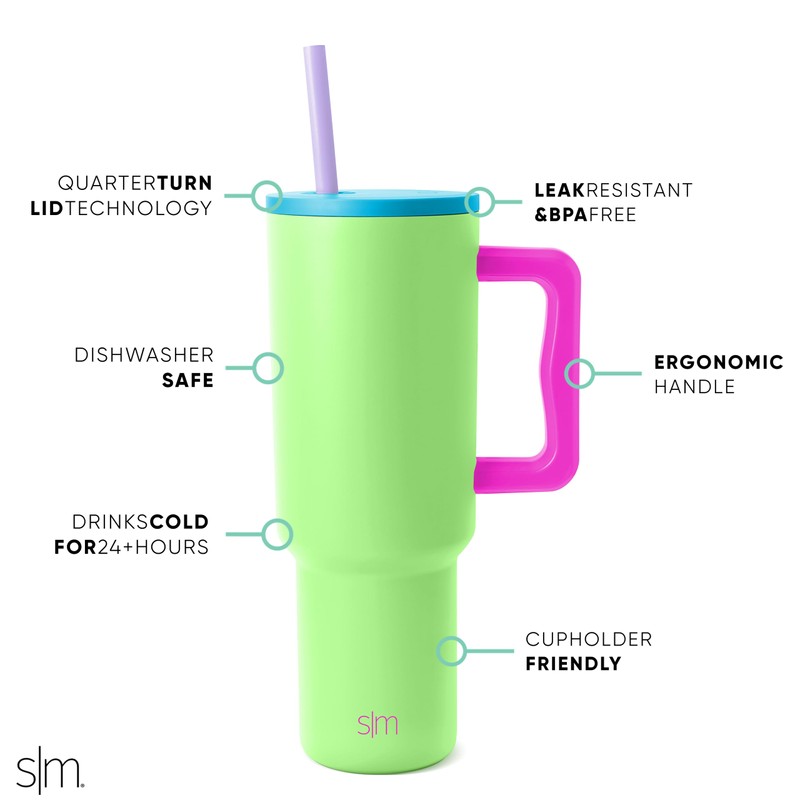 Simple Modern - Vaso de 40 onzas con asa y tapa de popote, botella de agua de acero inoxidable reutilizable y aislada, para uso en portavasos, regalos para mujeres, hombres, él, ella, colección Trek,