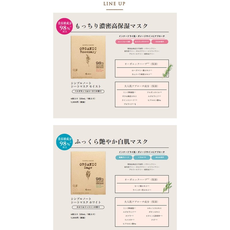 Simple Note Sheet Mask, White, Face Mask, 4 Sheets (x1)