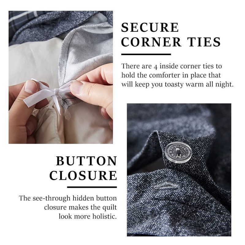- 【Closure and Ties】: Using hiding button closure, convenient to get your duvet in and out. And there are four secure corner ties to make sure no shifting of the comforter.