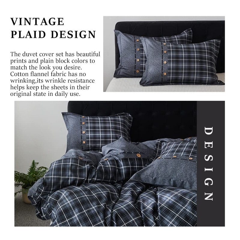 - 【Design】: Buffalo check gingham plaid geometric checker pattern, decorating coconut buttons on the comforter cover and pillowshams. It is unique and the one and the only.A variety of classic colors, fashion and simplicity, to meet your freshness.