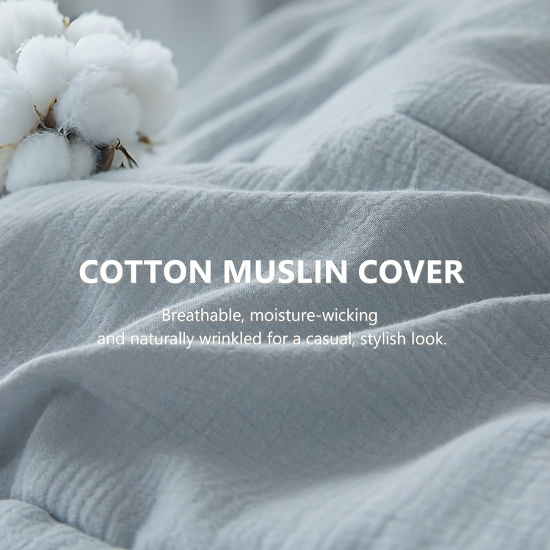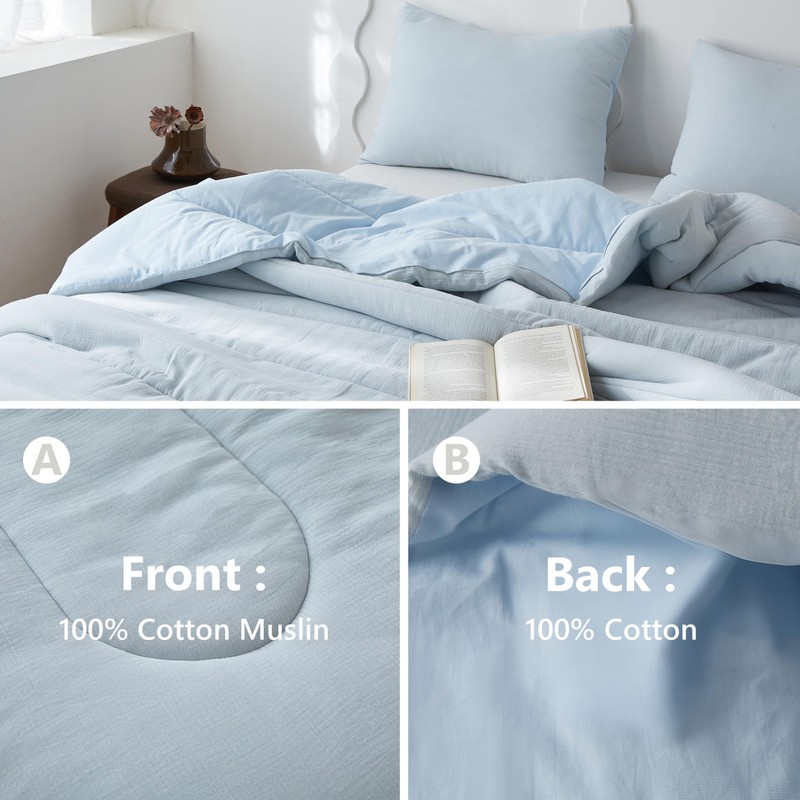 - Skin-Friendly&Breathable: Our cotton muslin comforter set is very breathable and great moisture absorption, promoting a deep, cozy sleep for you while preventing overheating.No harsh chemicals or synthetic materials were used, making it safe for you and your family. With every wash, the cotton comforter will be more and more softer.