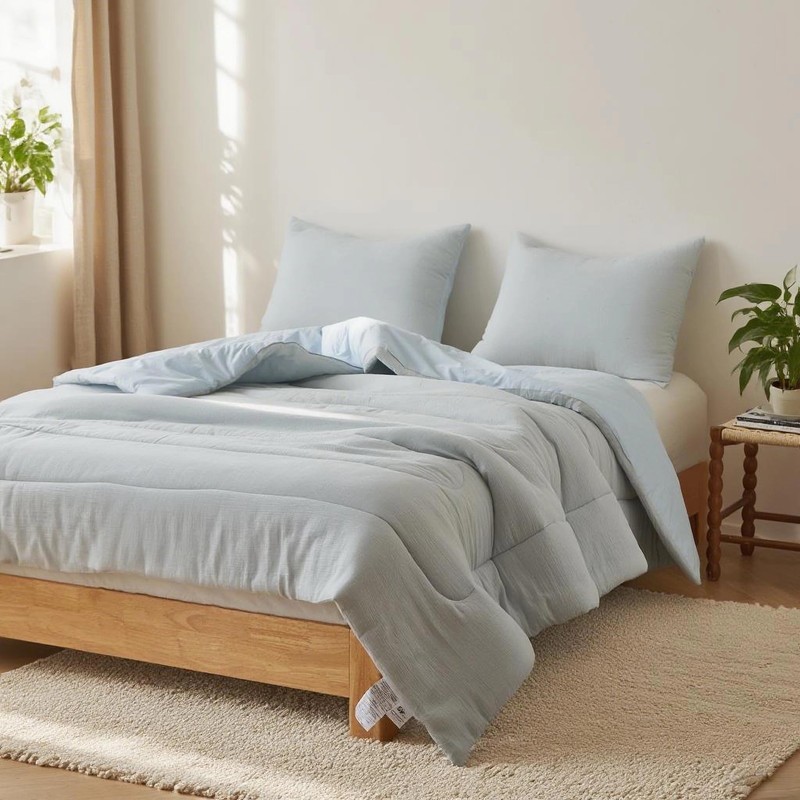 - Elegant Design:Our cotton comforter set use seersucker material , emphasizing bedding aesthetic design. With its unique crinkle texture and fluffy fill, the muslin comforter ensures ultimate comfort and perfect warmth for maximum coziness night.The special design of U-stitch quilting keeps the filling in place ensuring a stable sleep and a long time usage.