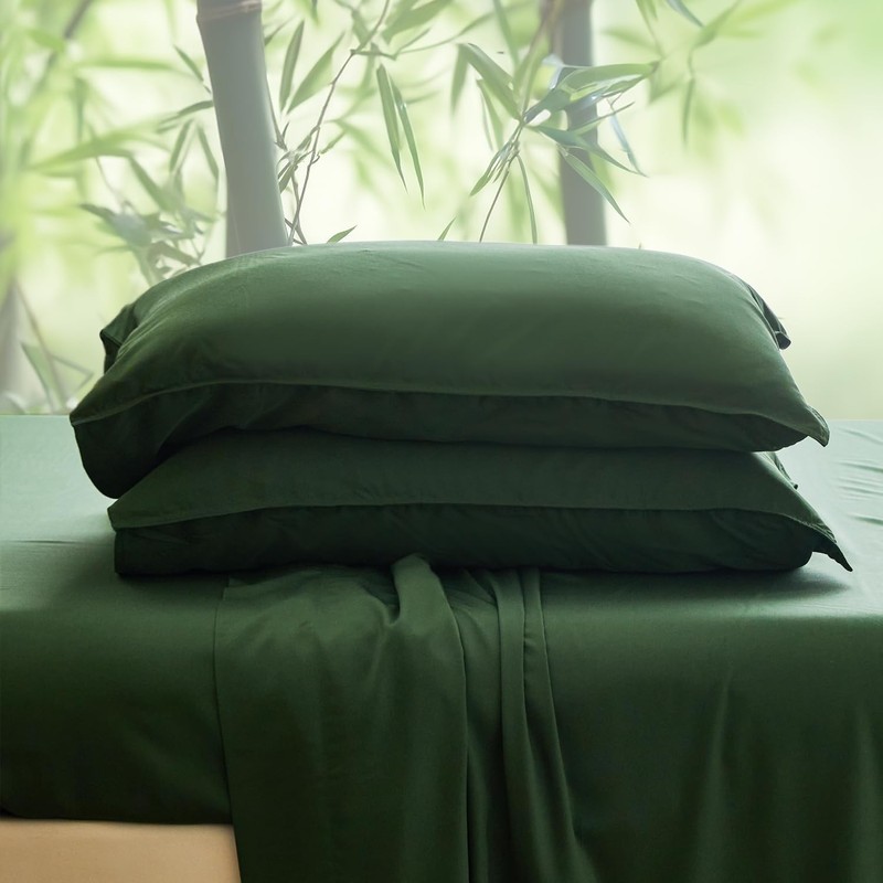 Simple&Opulence 100% Organic Viscose Derived from Bamboo Bed Sheet Set 4 Piece, Breathable Cooling Bedding Set with 15" Deep Pockets, Luxury Ultra Soft for Hot Sleepers (Dark Green,Full)