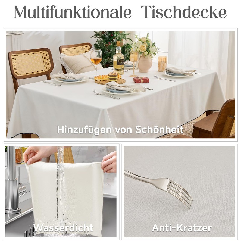 Simple&Opulence 140 x 200 cm Rectangular Tablecloth, 280 GSM Cotton Canvas Tablecloth, Waterproof & Wipeable & Durable, 6-8 Seats Tablecloth for Dining, Kitchen, Outdoor, White