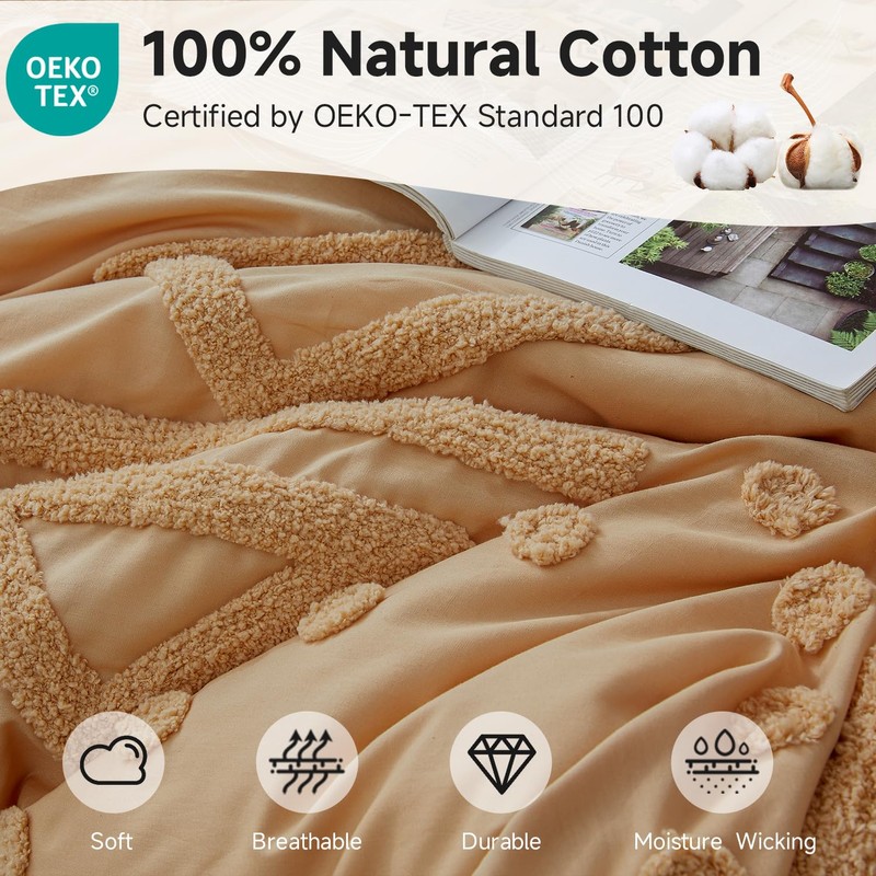- [Luxurious Tufted Embroidery] Experience plush diamond-inspired tufted patterns that infuse your bedroom with bohemian elegance. The raised embroidery delivers artisanal texture and depth, transforming your bedding into a refined statement piece that feels both stylish and inviting.