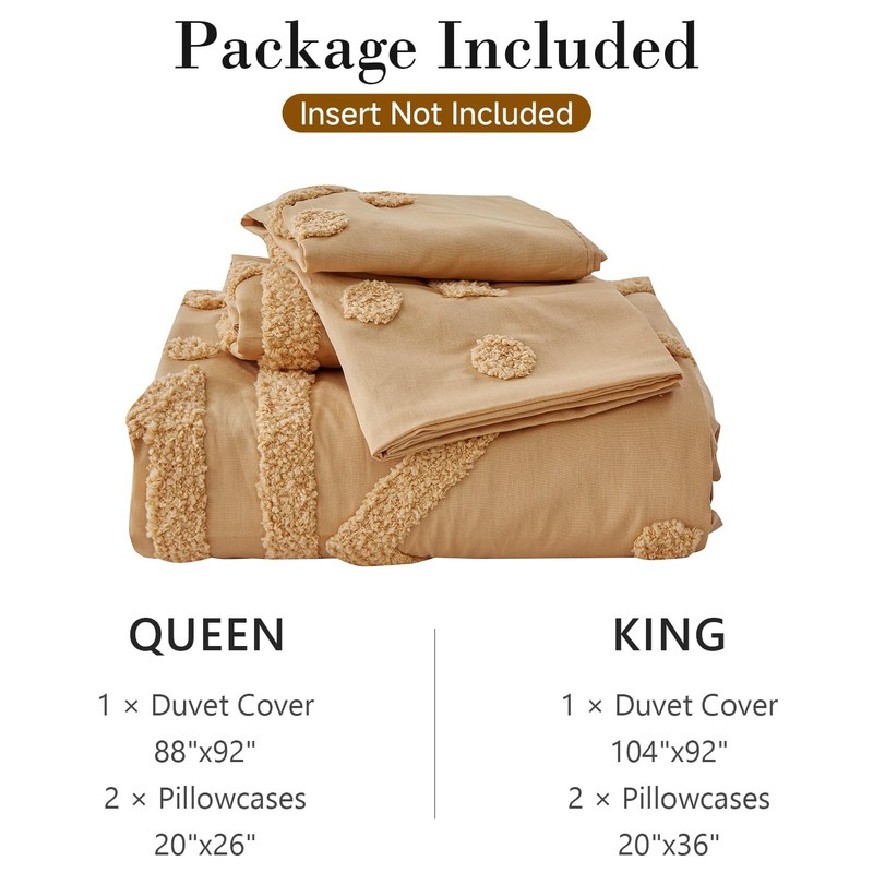 Simple&Opulence Boho Tufted Duvet Cover Set King Size, 100% Washed Cotton 3 Pieces Camel Textured Embroidery Comforter Cover, Soft & Breathable Jacquard Shabby Chic Farmhouse Bedding for All Seasons