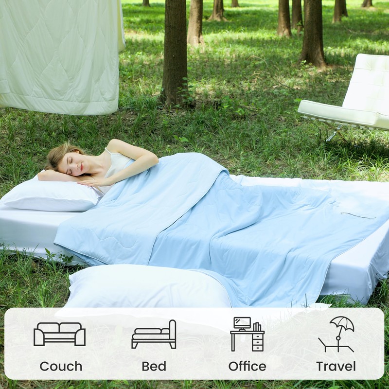 - ❄️【Easy Care】Our summer blankets is hand and machine washable. Precise single-needle quilting technology keeps the filling in place, ensuring it won't lose its shape or shift after repeated washing in the washing machine. Recommend using a mild detergent and putting it in a laundry bag to prevent tangling and damage. Light wash <30℃, do not bleach, do not iron, do not dry clean, hang in a cool place.