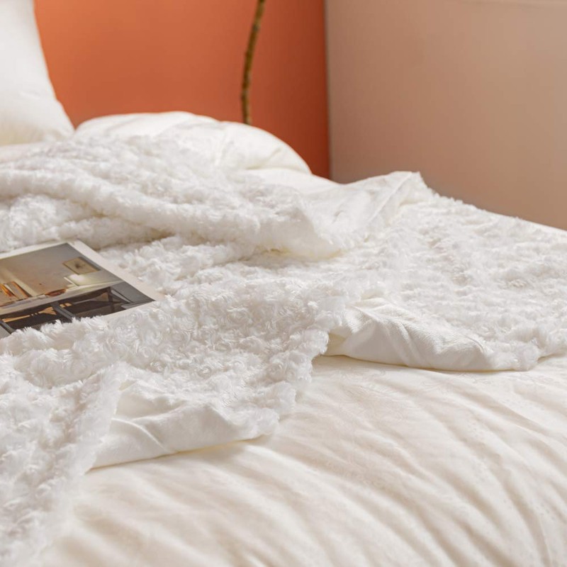 Simple&Opulence Plush Fluffy Throw Blanket Tridimensional Rose Pattern Soft Warm Microfiber Cozy Chic Shaggy Reversible Coverlet for Girls Home Décor Couch, 50"x 60", White