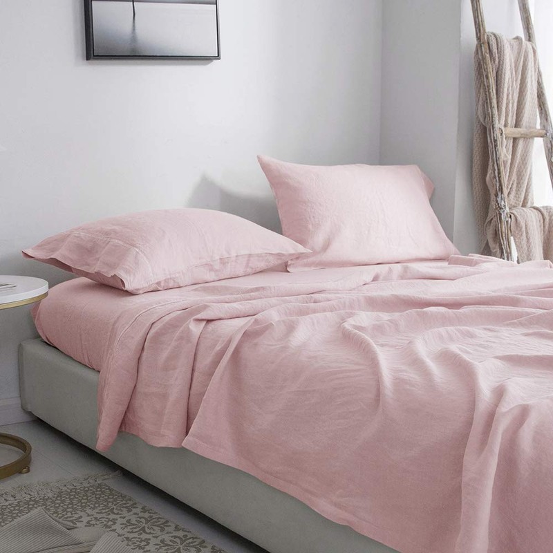 Simple&Opulence Pure Linen Sheet Set Full-4 Piece Belgian Flax Linen Bed Sheet (1 Flat Sheet, 1 Fitted Sheet ,2 Pillowcases) -Breathable Farmhouse Bedding Set(Blush Pink