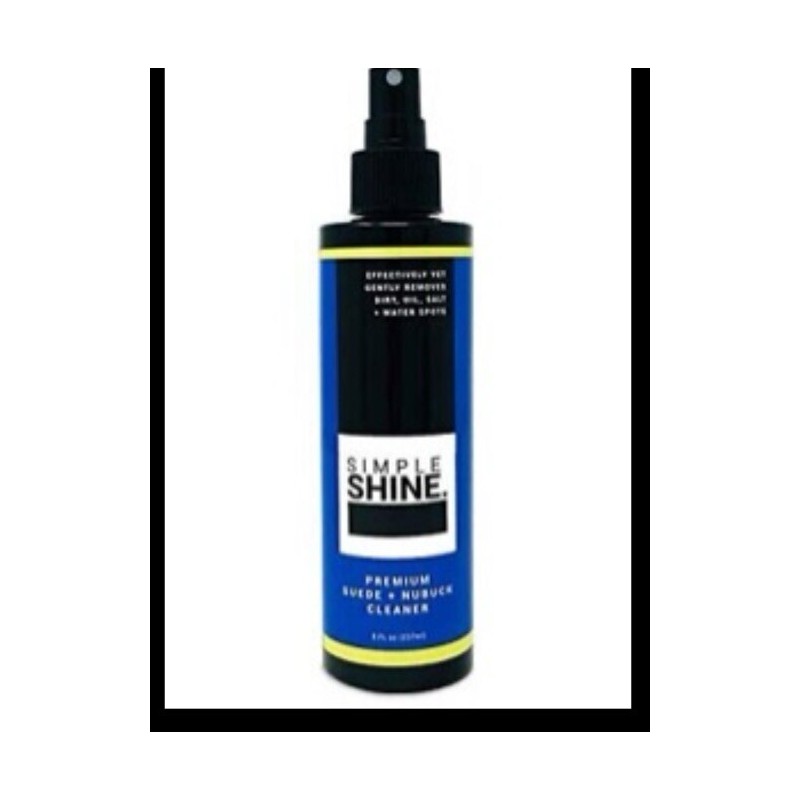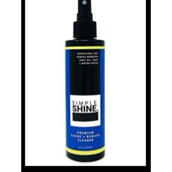 The product is a Simple Shine Premium Suede Cleaner, designed specifically for cleaning suede and nubuck materials. The care kit is suitable for regular-sized items and is made with an exterior material specified in the description. As a trusted brand in shoe care, Simple Shine offers a high-quality cleaner that effectively removes dirt and stains from suede and nubuck footwear, helping to maintain their appearance and longevity.