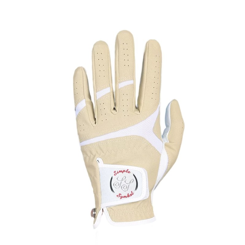 SIMPLE SYMBOL Men's Golf Glove Premium Synthetic Leather,Stable Grip,Two Pack(Left is Wear on Left Hand,Right is Wear on Right Hand) Four Colors to Choose from White/Sky/Beige/Red(Beige,S,Left)