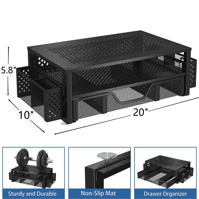 Simple Trending 2 Tier Metal Monitor Stand Monitor riser and Computer Desk Organizer with Dra...
