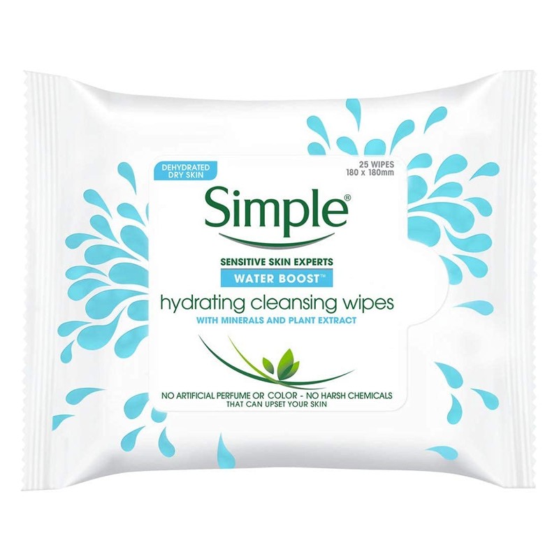 - Simple Water Boost Hydrating Cleansing Face Wipes with micellar cleansing technology gently yet effectively cleanse your face, removing dirt and make-up.