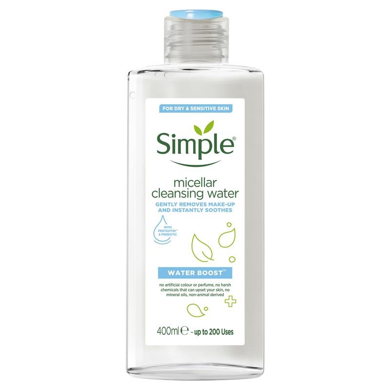 • Simple Water Boost Micellar Cleansing Water gently yet effectively cleanses your skin, removing both dirt AND make-up• Hydrates skin, leaving it feeling refreshed and supple.