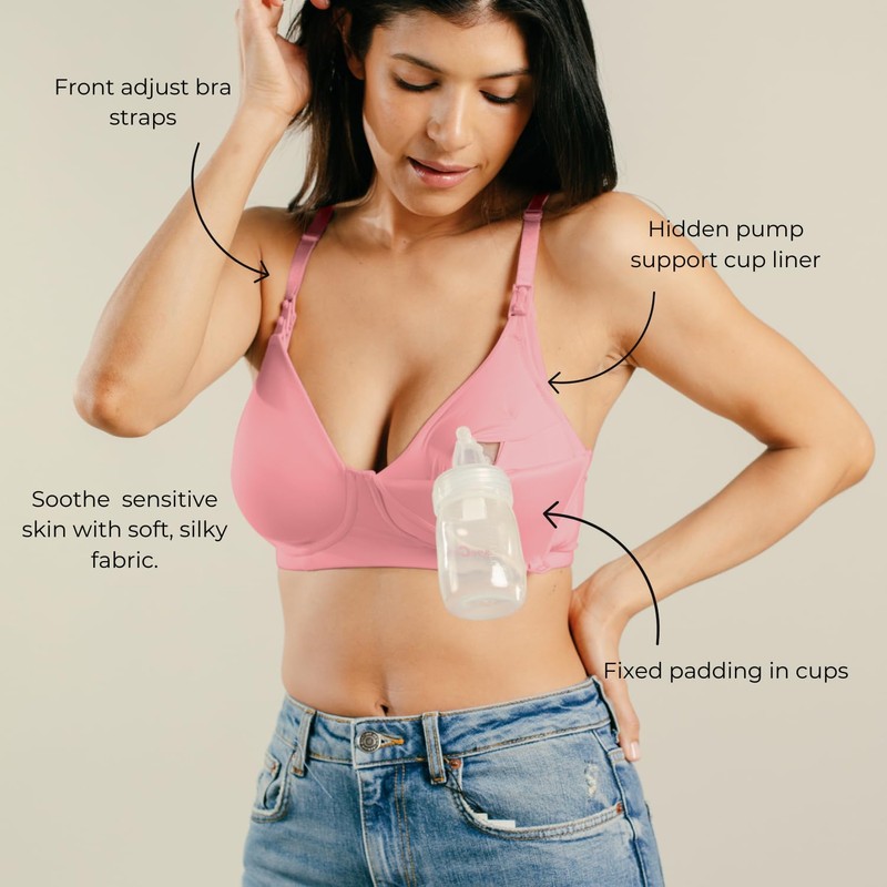 - IDEAL FOR NURSING AND PUMPING || No need to undo multiple clasps to breastfeed. Our unique, patented clasp design is easy to use. Undo the upper portion of the clasp to fully expose your breast for skin to skin breastfeeding. Undo the lower part of the clasp to access the hidden pump support liner for hands free breast pump support.