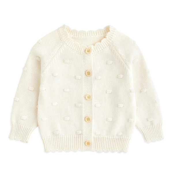 Simplee kids Baby Girl Sweater Cardigan with Hat Cotton White Cream Knitted Coat Sizes 2-3 Years