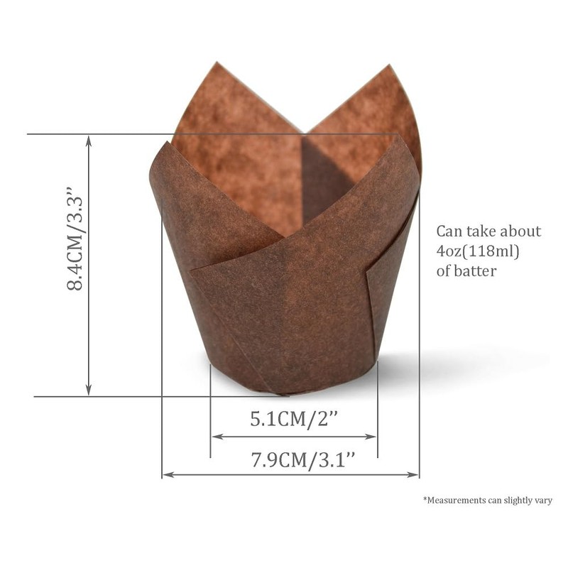 - ★PERFECT MUFFIN SIZE!★ The ramekins cup can hold about 4oz(118ml) of batter and makes ideal or commonly used muffin size. Made out of a paper square size 5.9"5.9"(15cm*15cm). Measurements can slightly vary, bottom diameter 2"(5.1cm), top diameter 3.1"(8cm), height to tips 3.3"(8.3cm).