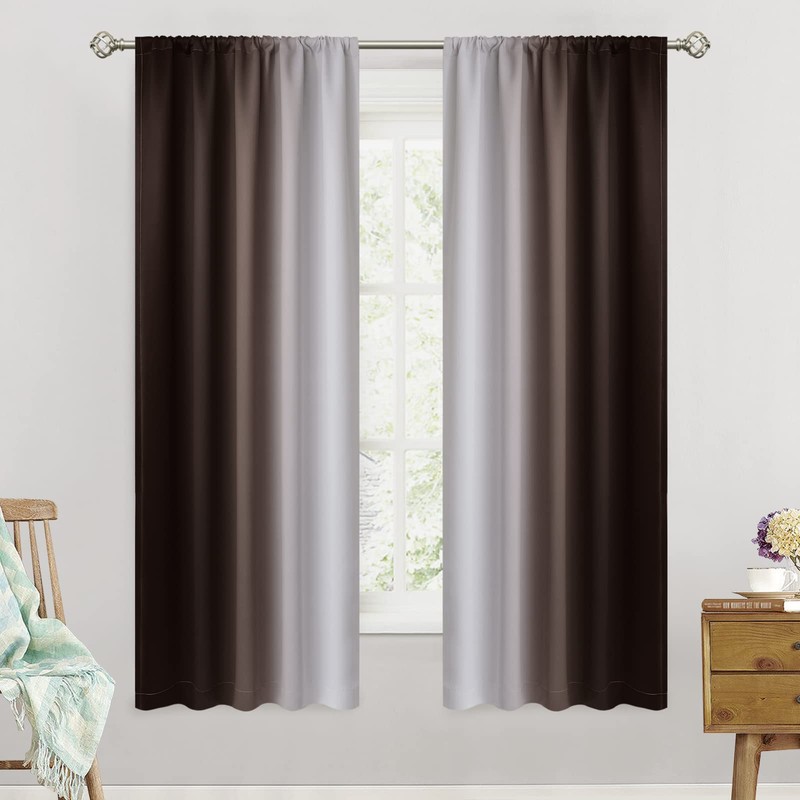 SimpleHome Ombre Room Darkening Curtains for Living Room, Rod Pocket Light Blocking Gradient Brown to Greyish White Thermal Insulated Window Curtains/Drapes for Bedroom, 2 Panels, 52x63 inches Length