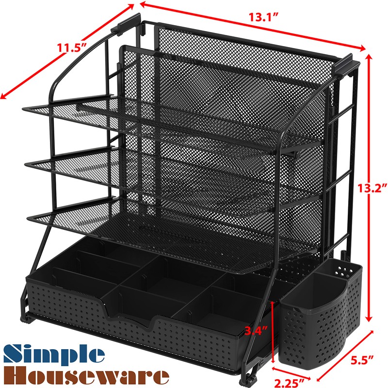 Simple Houseware Desktop Document Tray Organizer with Sliding Drawer/Caddy/Ha...