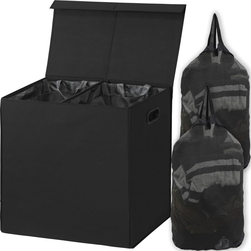 - Laundry bags included: Laundry bags attached on Hamper and removable for transport from hamper to wash machine.