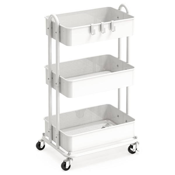 Simple Houseware 3-Tier Heavy Duty Metal Utility Rolling Cart, White