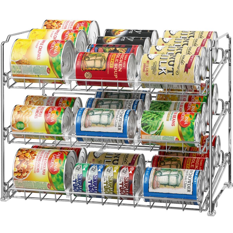Simple Houseware Stackable Can Organizer Rack for Pantry/Cabinet – 11.5" D x 17" W x 13.75" H, Holds 36 Cans, 3-Tier Can Food Storage Dispenser, Chrome