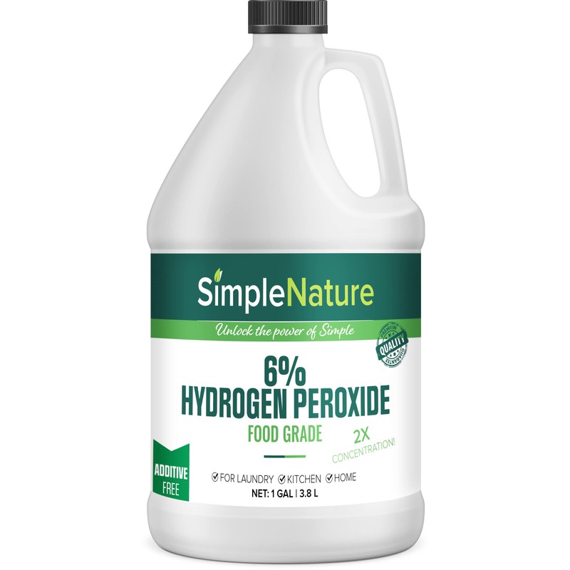SimpleNature 6% Food Grade Hydrogen Peroxide Solution - 1 Gallon - Natural Multipurpose Cleaner - Made in USA - Ideal for Commercial, Residential, Kitchen, Bath, Laundry, and More - Ecofriendly