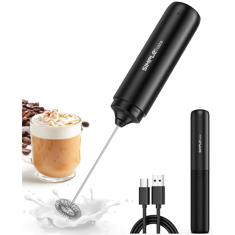 SIMPLETaste Rechargeable Milk Frother Handheld Electric Foam Maker, USB-C Drink Mixer with Stainless Steel Whisk for Cappuccino, Bulletproof Coffee, Latte