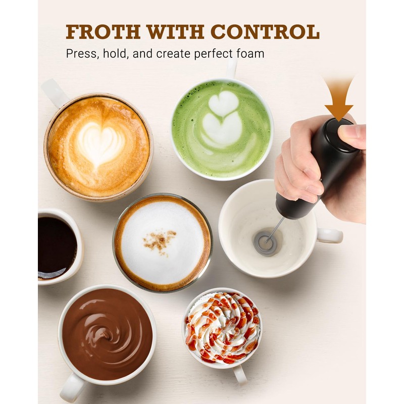 - Creamy Rich Froth in Seconds: Our handheld frother's high-speed motor and precision whisk create silky foam in 20 seconds — perfect for lattes, cappuccinos, hot chocolate matcha and so on