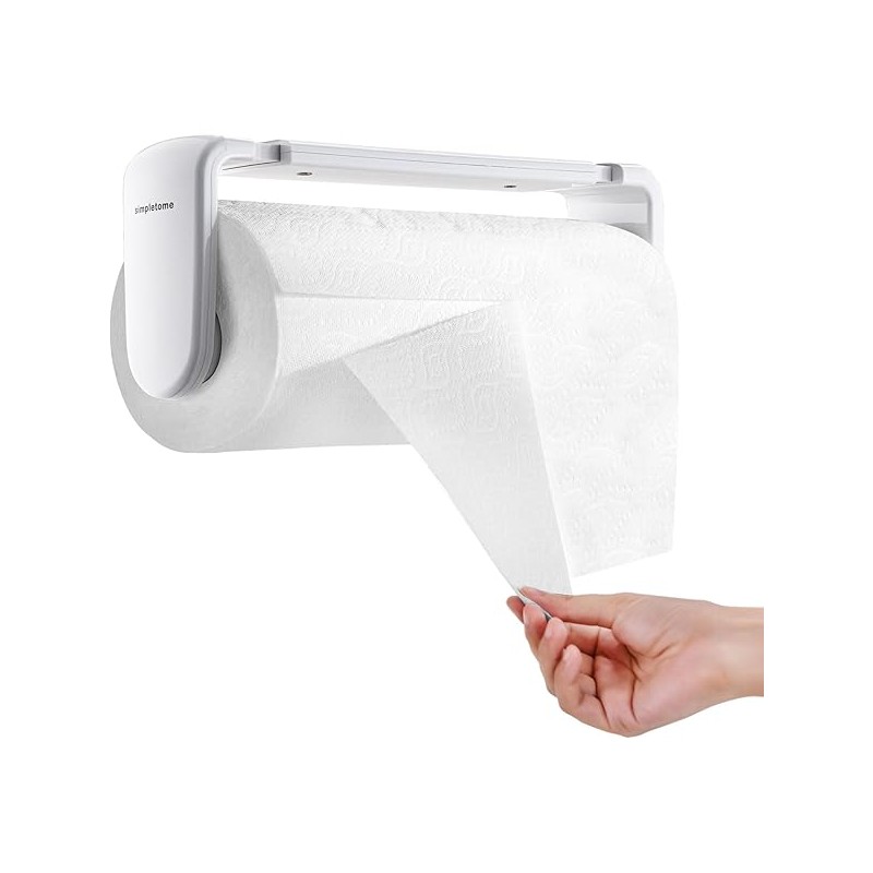 simpletome Paper Towel Holder ONE Hand Tear Adaptive Tension Arm Adjustable Length 9.4-11inch/24-28cm (White)