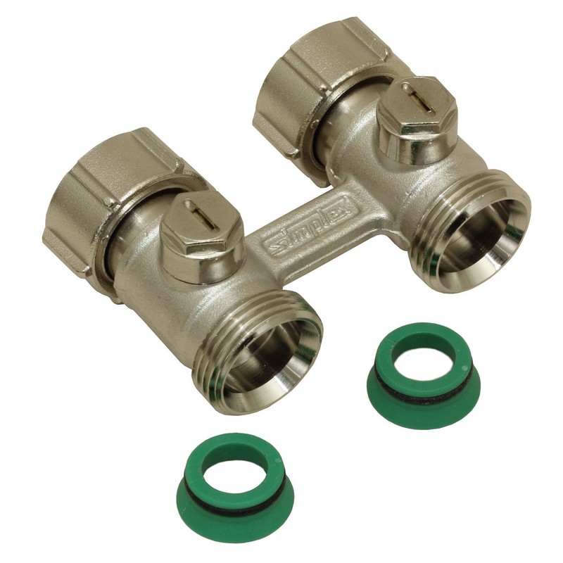 Simplex Two-pipe tap block D2/50 exclusive, through-shape, lockable, with 3/4 inch male thread