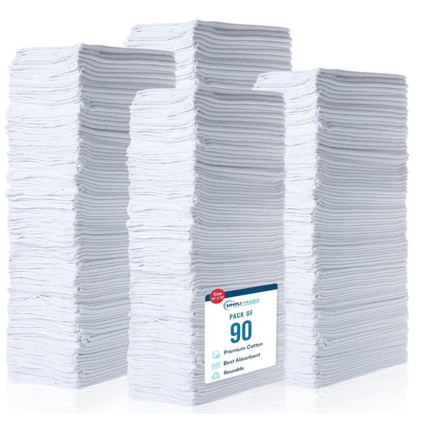 Simpli-Magic Cotton Shop Towels, Commercial Grade White, 90 Pack, Size: 14" x 12"
