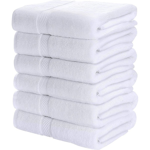 - Set includes SIX (6) bath towels (25 inch x 50 inch) These truly indulgent towels are available in a wide variety of beautiful colors to suit any home, dorm or hotel bathroom.